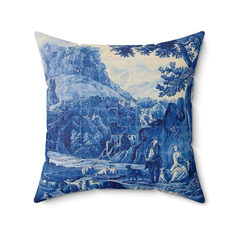 Blue and White Delft Toile Tile Faux Suede Pillow, Decor, Decorative Cushion